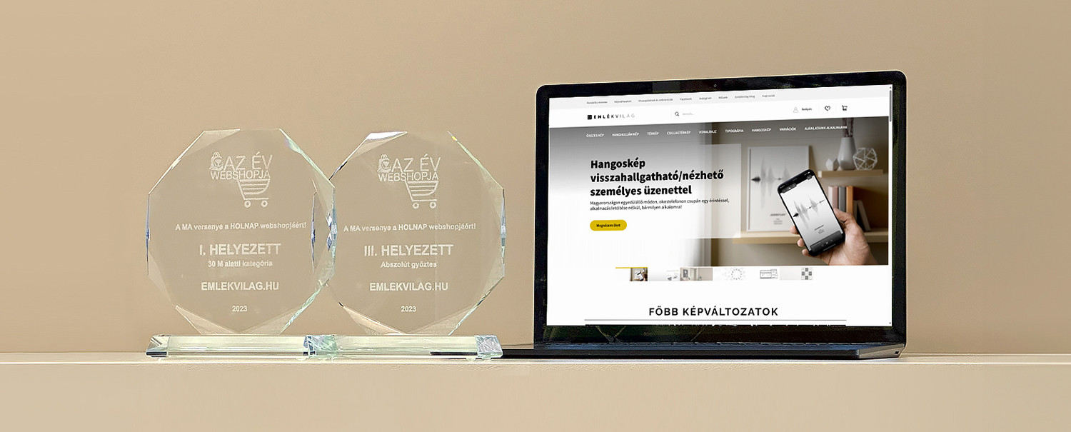 Az Év Webshopja Versenyt idén már a hetedik alkalommal rendezték meg és valamivel több, mint 800 áruház nevezett. Tavaly jelentkeztünk először és a TOP100-ig jutottunk, idén viszont elhoztuk az I. helyezést a nemrég 2 éves születésnapját ünneplő Emlékvilággal 30 M alatti kategóriában, az abszolút TOP10-ben pedig a III. helyezést értük el!